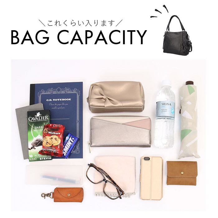 ・持ち手は長めに作られており肩掛けや、付属のショルダーベルトを付ければ、斜め掛けスタイルもできる2WAY仕様!