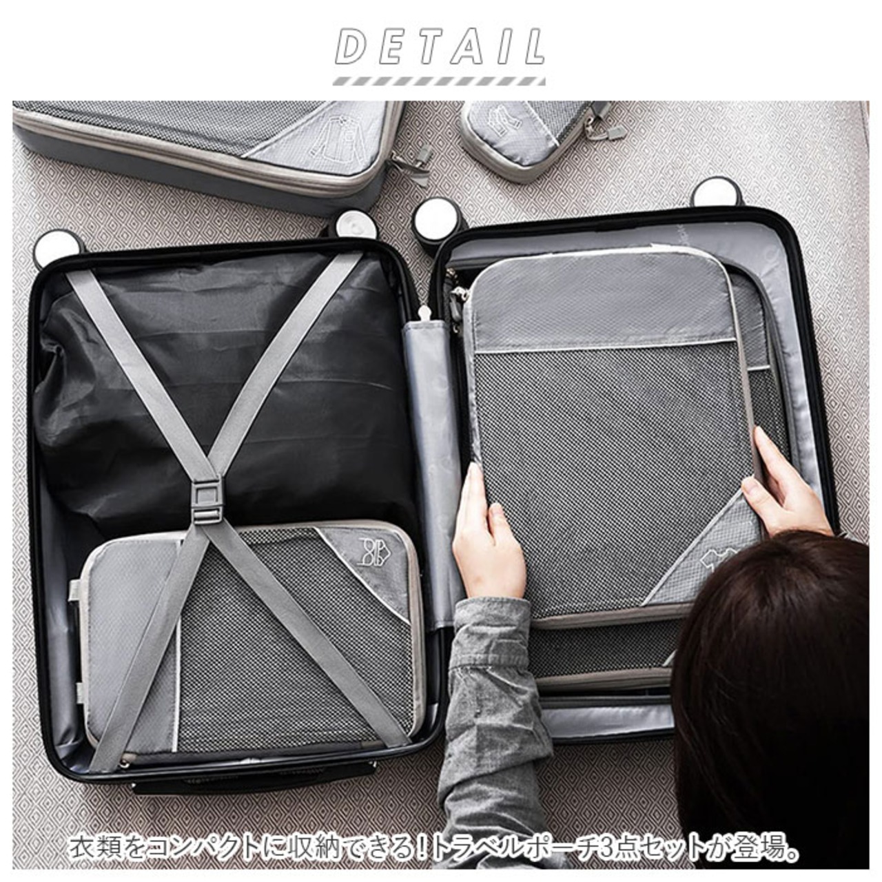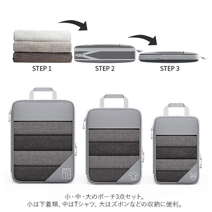 ・衣類をコンパクトに収納できる!トラベルポーチ3点セットが登場。