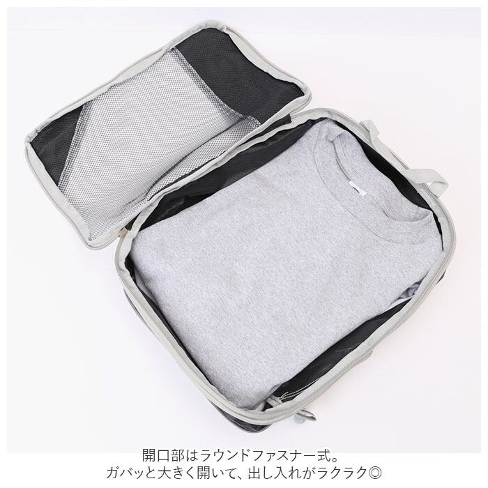 ・開口部はラウンドファスナー式。ガバッと大きく開いて、出し入れがラクラク◎