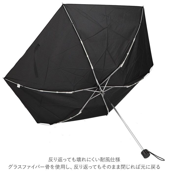・反り返っても壊れにくい耐風仕様。グラスファイバー骨を使用し、反り返ってもそのまま閉じれば元に戻る。
