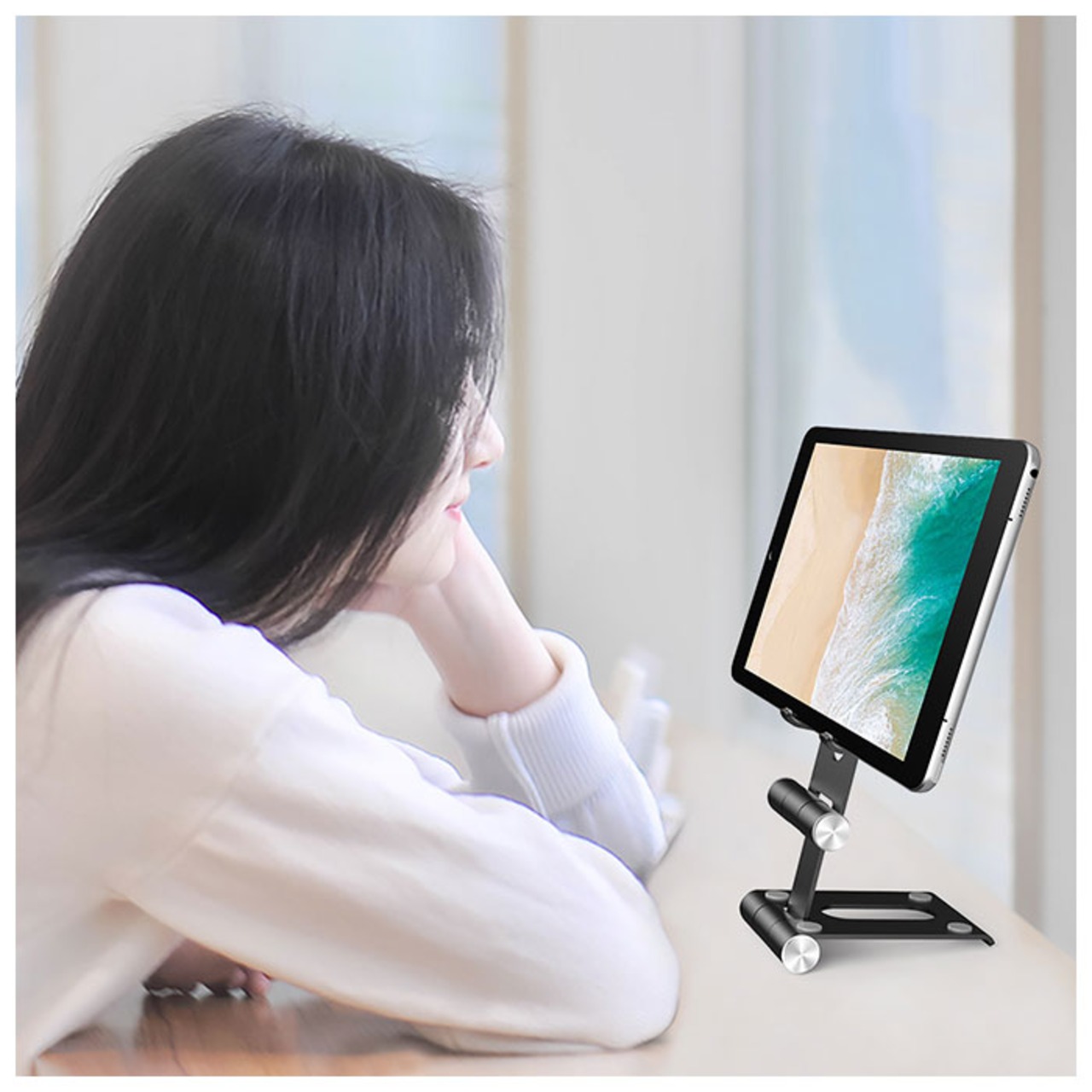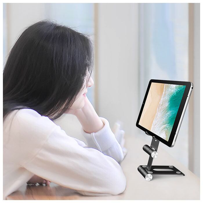 ・デスクの上に置いてスマホやタブレットをセットすれば、ハンズフリーで動画鑑賞が可能に。