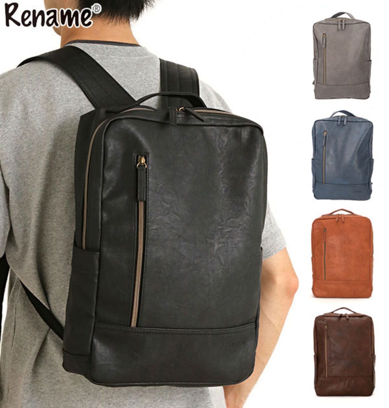 スクエア合皮リュック