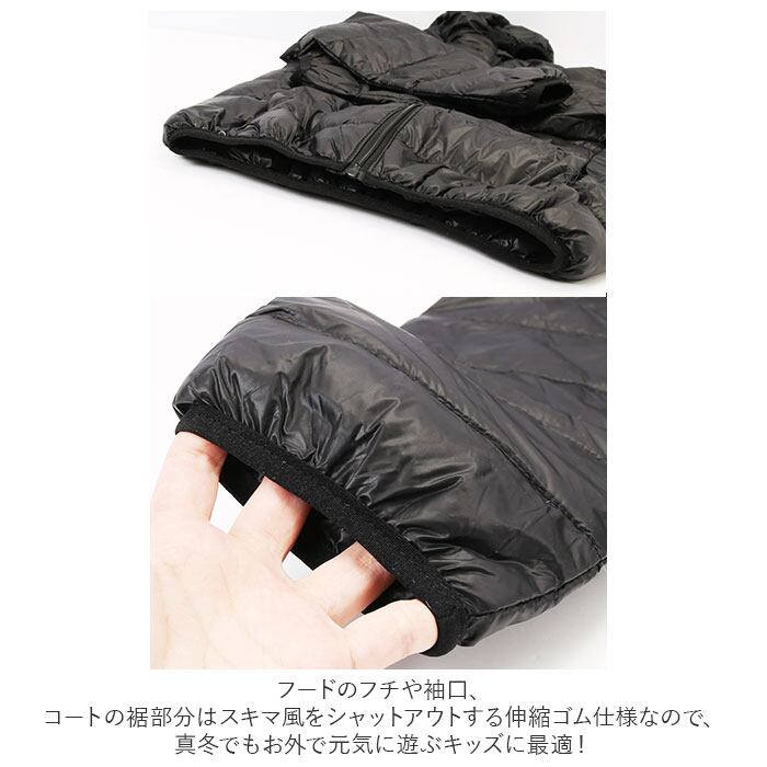 ・フードのフチや袖口、コートの裾部分はスキマ風をシャットアウトする伸縮ゴム仕様なので、真冬でもお外で元気に遊ぶキッズに最適!
