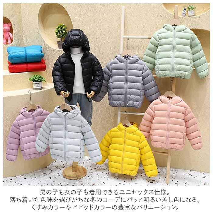 ・ふわっと軽くて、ほっこり暖かい♪色鮮やかなカラーリングが目を惹く、キッズ用ダウンコート(収納ポーチ付き)!