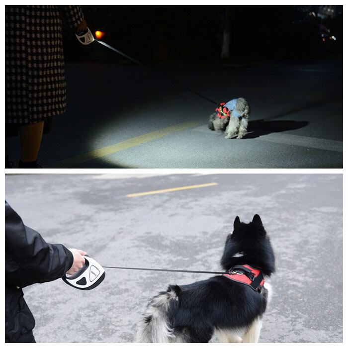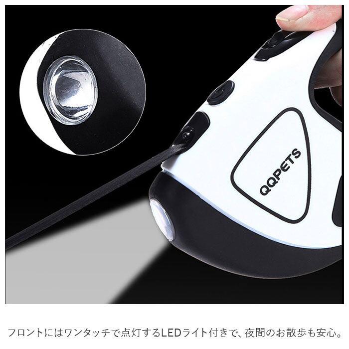 犬 リード 巻き取り式 LEDライト 自動巻き ペット 通販 光るリード ロングリード ドッグリード 犬用リード ペットリード 伸縮リード 自動リード 伸縮 ストラップ付き 落下防止 小型犬 中型犬 大型犬 お散歩 散歩 お出かけ お出掛け おでかけ
