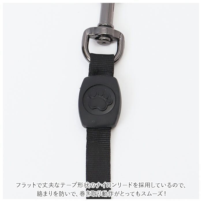 ・フラットで丈夫なテープ形状のナイロンリードを採用しているので、絡まりを防いで、巻き取り動作がとってもスムーズ!