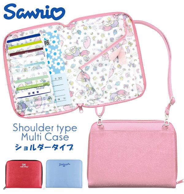 マルチケース ショルダータイプ Kooza クーザ 通販 母子手帳ケース ショルダーマルチケース ショルダーストラップ付き 見開きタイプ サンリオ Sanrio ハローキティ リトルツインスターズ キキララ タキシードサム 斜めがけ ななめ掛け 肩掛け ショルダー かわいい おしゃれ