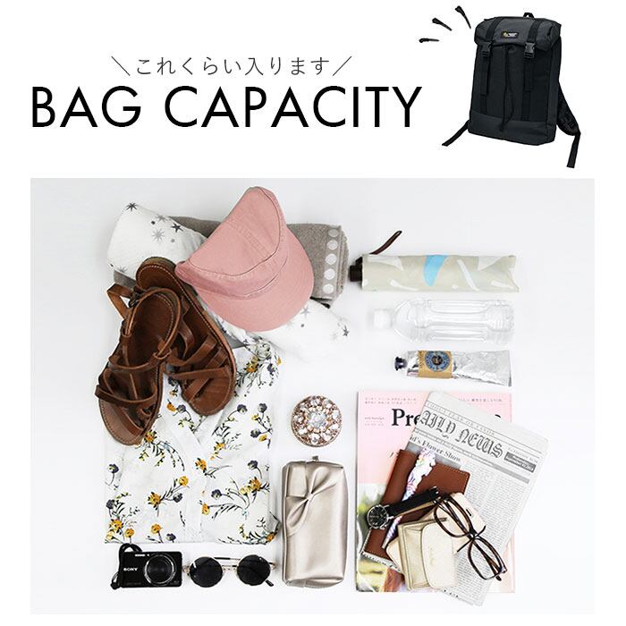 ・本体の容量は約20L。内部にはオープンポケットx1。かぶせ部分には小物収納に便利なファスナーポケット付きで、スマホやハンカチなど良く使う物が取り出しやすい♪
