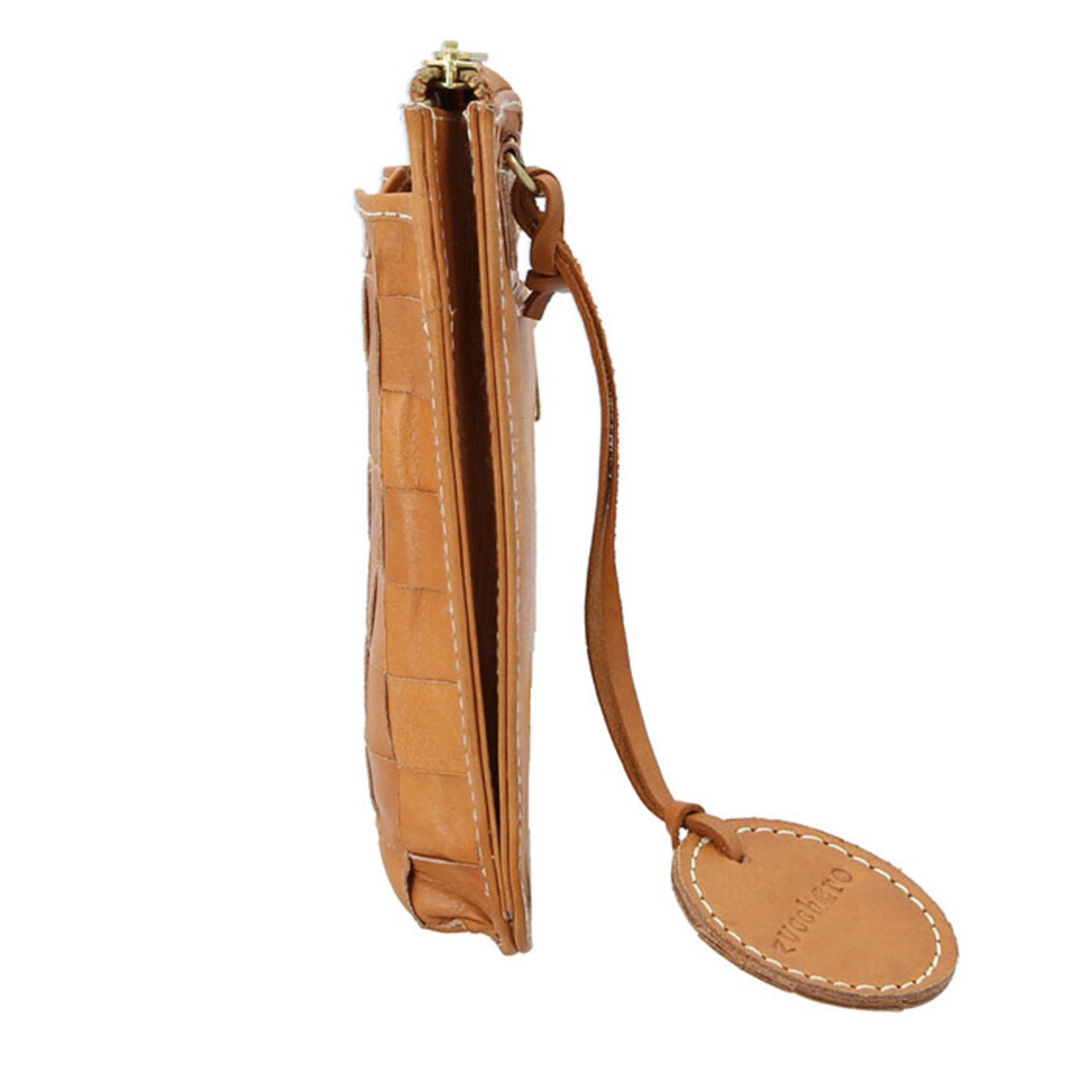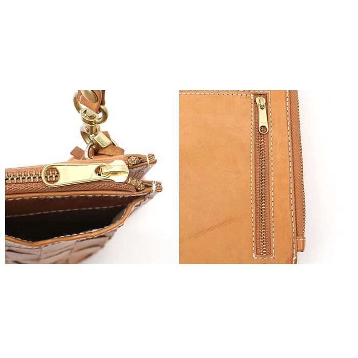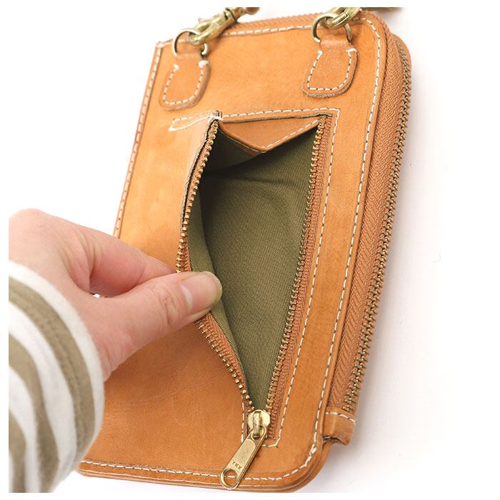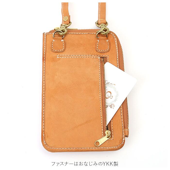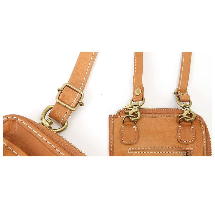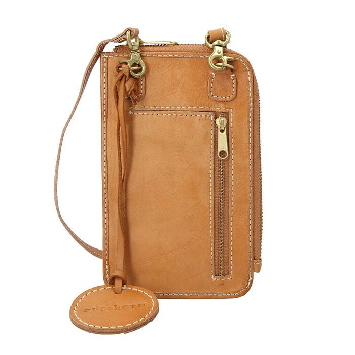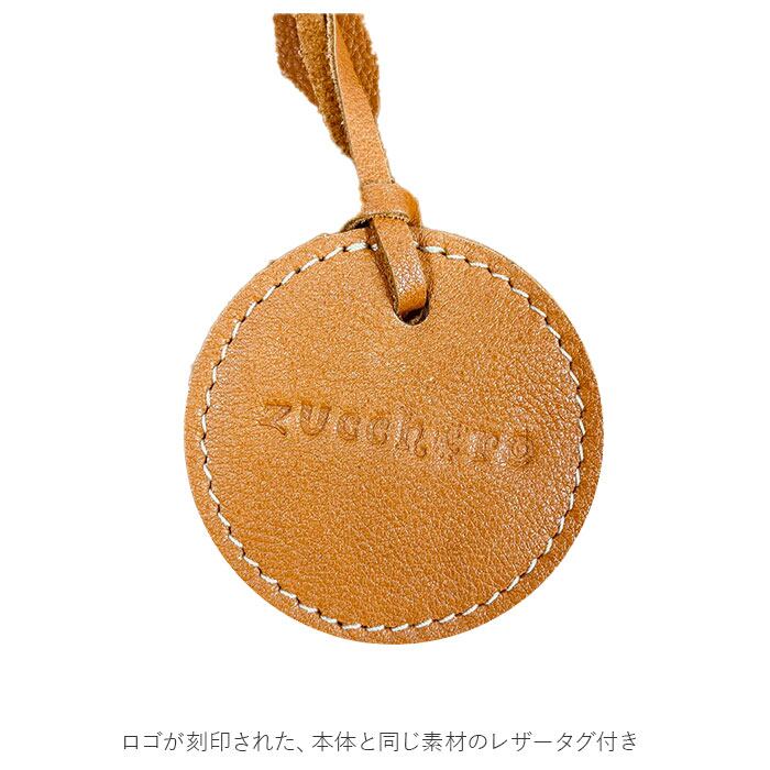 ・使い込むほどに味わいが増す、ナチュラルレザー素材ならではの経年変化も楽しめる。「zucchero」のロゴが刻印された、本体と同じ素材のレザータグ付き。