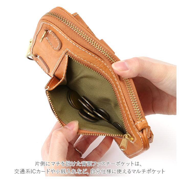 ・片側にマチを設けた背面ファスナーポケットは、交通系ICカードや小銭入れなど、自分仕様に使えるマルチポケット。ファスナーはおなじみのYKK製を使用しているから安心。