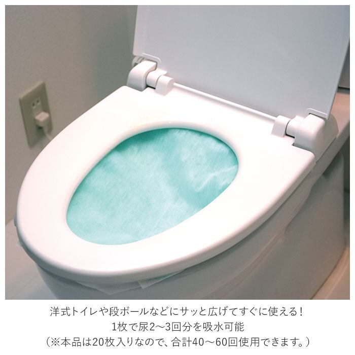 1枚で尿2〜3回分を吸水可能。(※本品は20枚入りなので、合計40〜60回使用できます。)