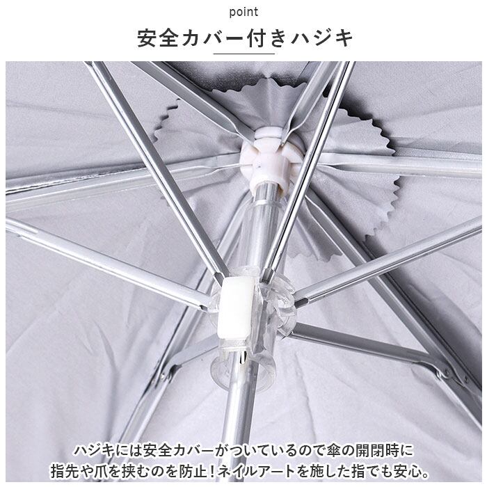 ・ハジキには安全カバーがついているので傘の開閉時に指先や爪を挟むのを防止!ネイルアートを施した指でも安心。
