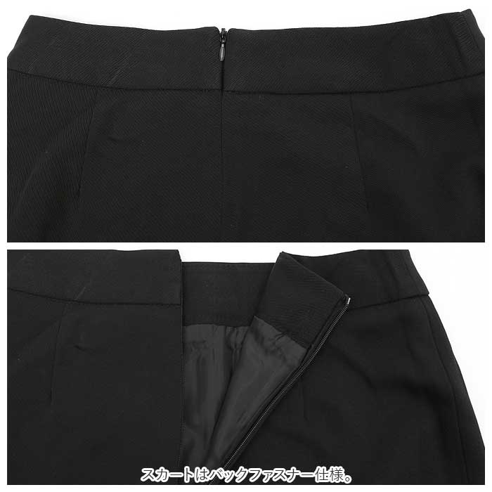 ・スカートはバックファスナー仕様。膝が見えるくらいの丈感で、安心の裏地付き。