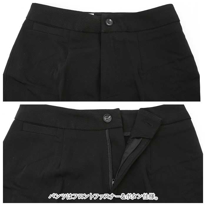 ・ボトムスはパンツとスカートの2種類。どちらも前後にタックを入れることで、ウエスト周りがすっきりとした印象に♪