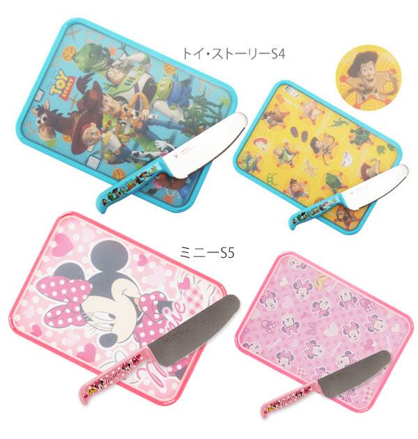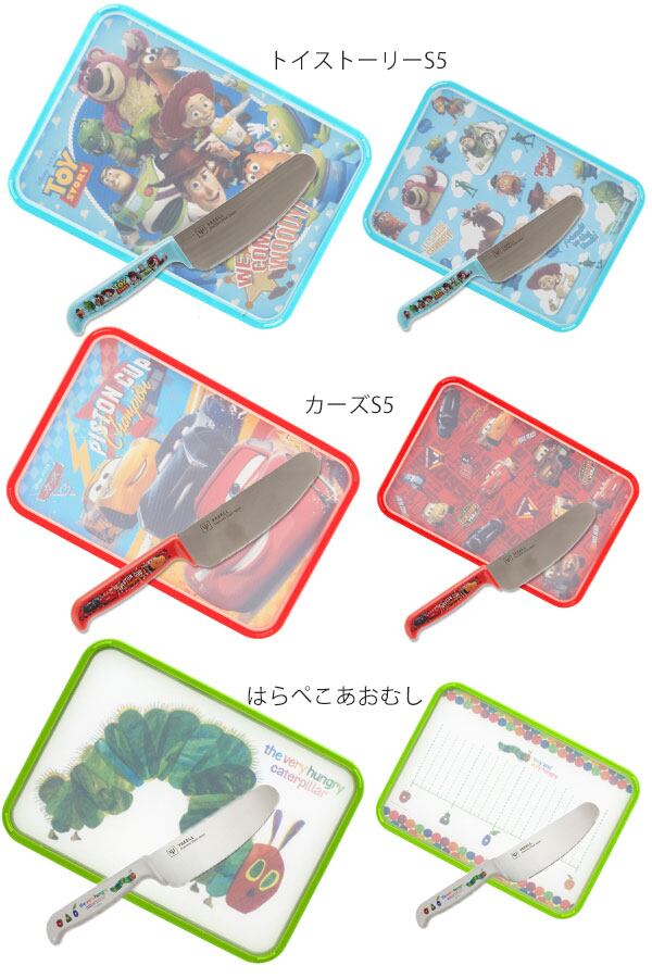 お子様向けディズニーキャラクター包丁とまな板のセットです。この包丁は、お子様が安全に調理の練習ができる ように開発されたもので、刃先が丸くギザギザ刃になっていて、安全性を重視していますので普通の包丁の様には切れません。ミニまな板は表面にエンボス加工をしており、傷が目立ちにくくなるだけでなく、食材が滑りにくくなるので生地をこねたり型抜きしたり、野菜を固定して皮をむいたりと色々な使い方ができます。エンボス加工は面によって粗目と細目になっているので両面使えるリバーシブルデザインです。
