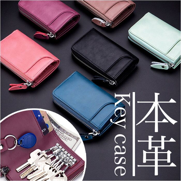 キーケース 革 通販 カードケース レディース メンズ 本革 ミニ財布 財布 おしゃれ 母の日 父の日 クリスマス 誕生日 贈り物 ギフト 黒 紫 ネイビー ピンク あずき ミント