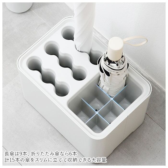・長傘は9本、折りたたみ傘なら6本。計15本の傘をスリムに立てて収納できる大容量。