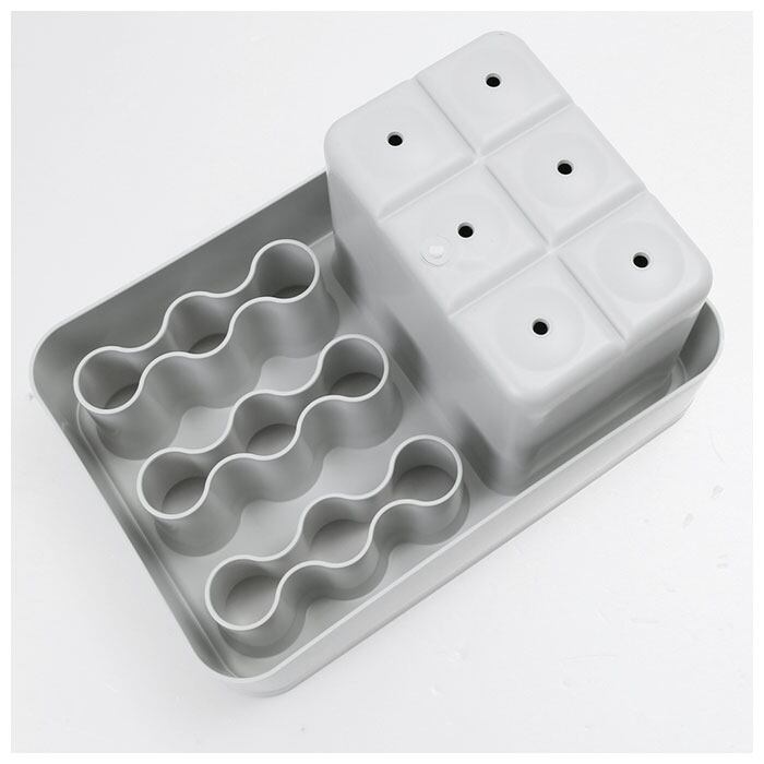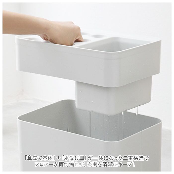 「傘立て本体」+「水受け皿」が一体になった二重構造で、フロアーが雨で濡れず、玄関を清潔にキープ!
