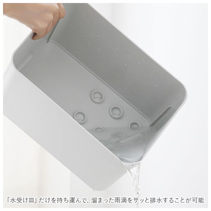 「水受け皿」だけを持ち運んで、溜まった雨滴をサッと排水することが可能。