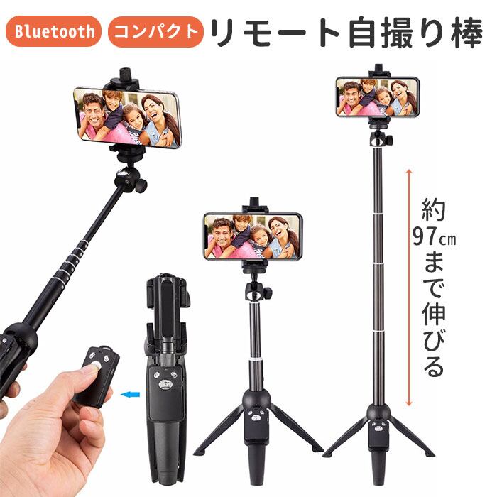 自撮り棒 三脚付き 通販 iphone bluetooth 約 100cm 96cm リモートシャッターコントロール 電話クリップホルダー セルカ棒 セルフィ じどり棒 360度回転 ワイヤレスリモコン スマホ スマートフォン ブルートゥース 長い 撮影
