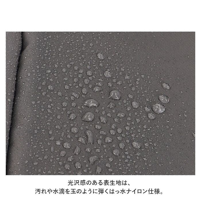 ・光沢感のある表生地は、汚れや水滴を玉のように弾くはっ水ナイロン仕様。ベーシックカラーからくすみ感のあるアースカラーまで、ファッションに合わせやすいカラーラインナップ。