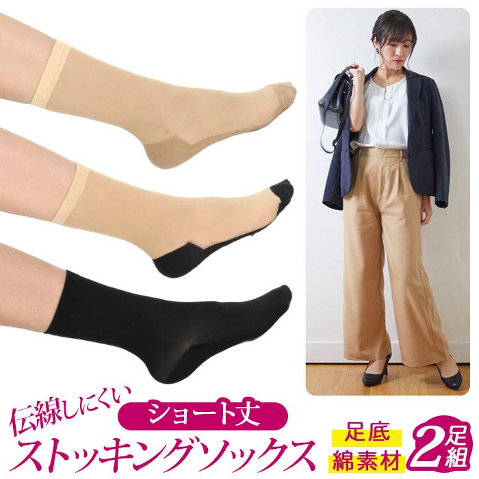 ストッキング 靴下 ショート丈 2足組 通販 ストッキング風 クルーソックス くるぶし丈 ひざ下ストッキング 膝したストッキング 伝線しにくい 蒸れにくい レディース ソックス くつ下 くつした フットカバー 砂山靴下 Pretty Walker プリティウォーカー