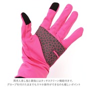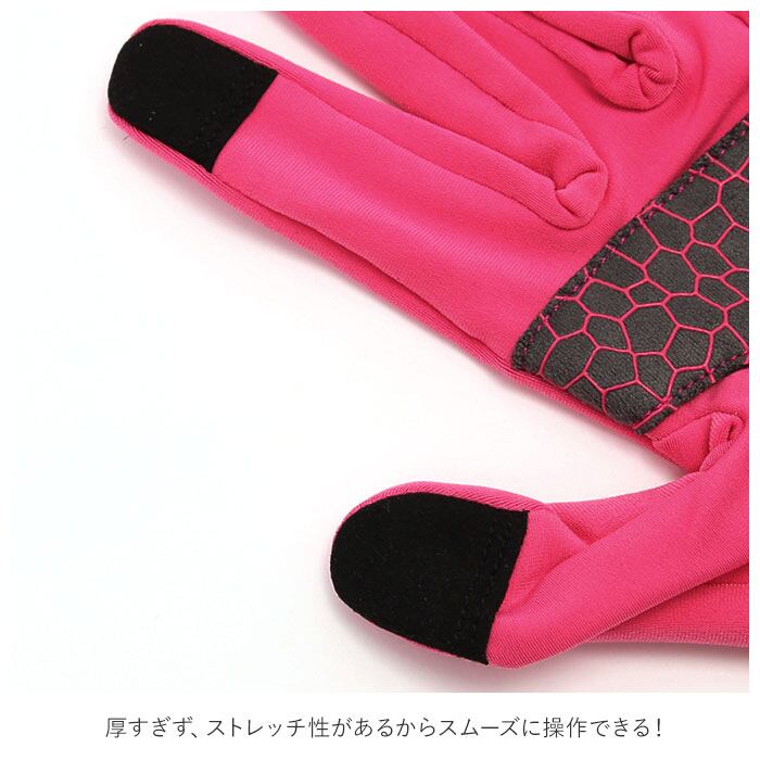 ・両手人差し指と親指にはタッチスクリーン機能付きで、グローブを付けたままでもスマホ操作ができるのも嬉しいポイント。厚すぎず、ストレッチ性があるからスムーズに操作できる!