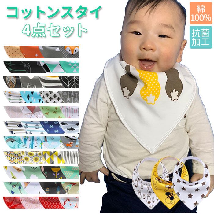 スタイ セット 通販 おしゃれ 4枚セット 男の子 女の子 綿 コットン よだれかけ よだれ掛け エプロン ビブ ベビー用品 赤ちゃん ベビー服 かわいい スナップボタン ベビースタイ バンダナスタイ