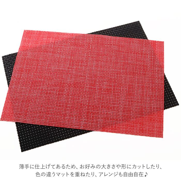 ・薄手に仕上げてあるため、お好みの大きさや形にカットしたり、色の違うマットを重ねたり、アレンジも自由自在♪