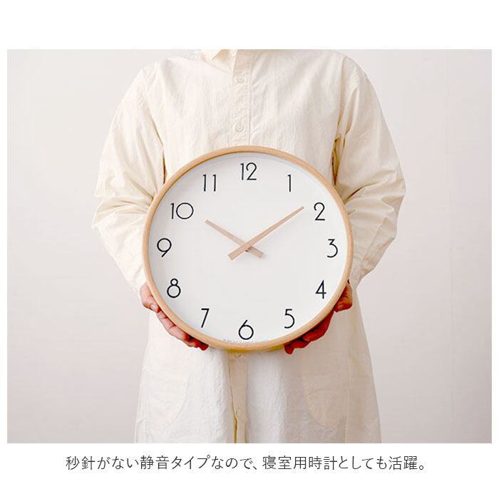 ・フレームにビーチ材、針にも木製素材を使用した、ナチュラルな風合いが魅力の掛け時計。