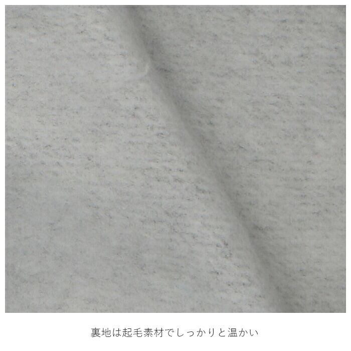 ・50%コットン・50%ポリエステル素材で、程よい吸湿性とサラリと心地よい肌触りが特徴。裏地は起毛素材でしっかりと温かい。