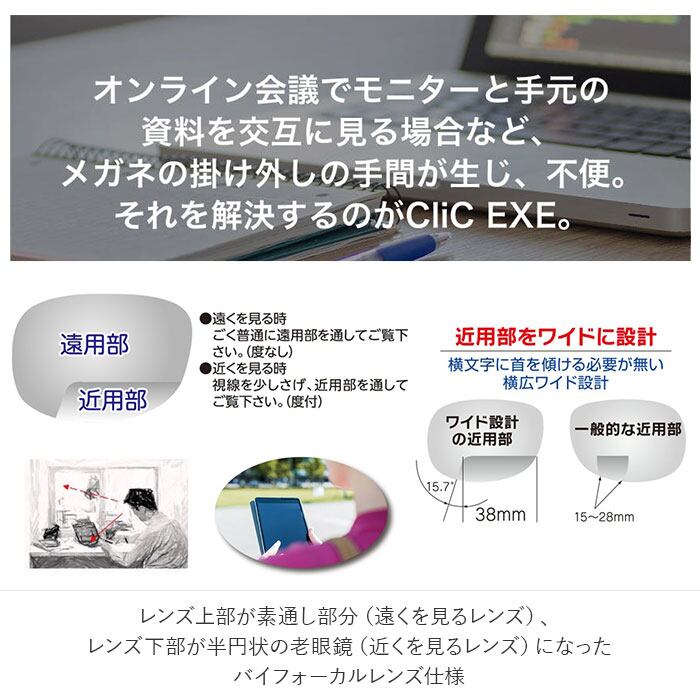 ・遠くも近くもこれ一本で見ることが可能!CliC EXE(クリック エグゼ)より遠近両用眼鏡が発売。