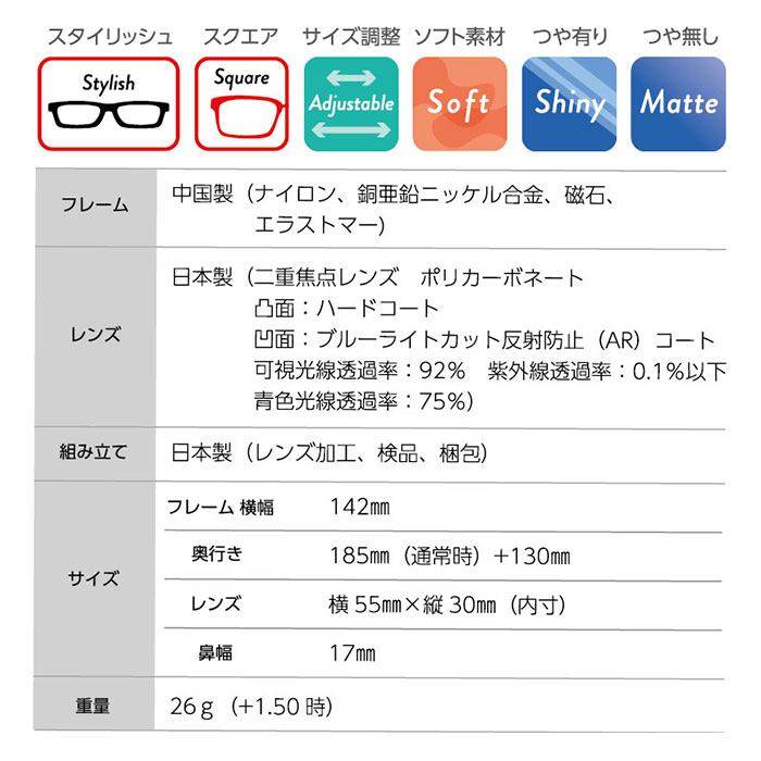 ・度数は「+1.50」「+2.00」「+2.50」の選べる3タイプ。