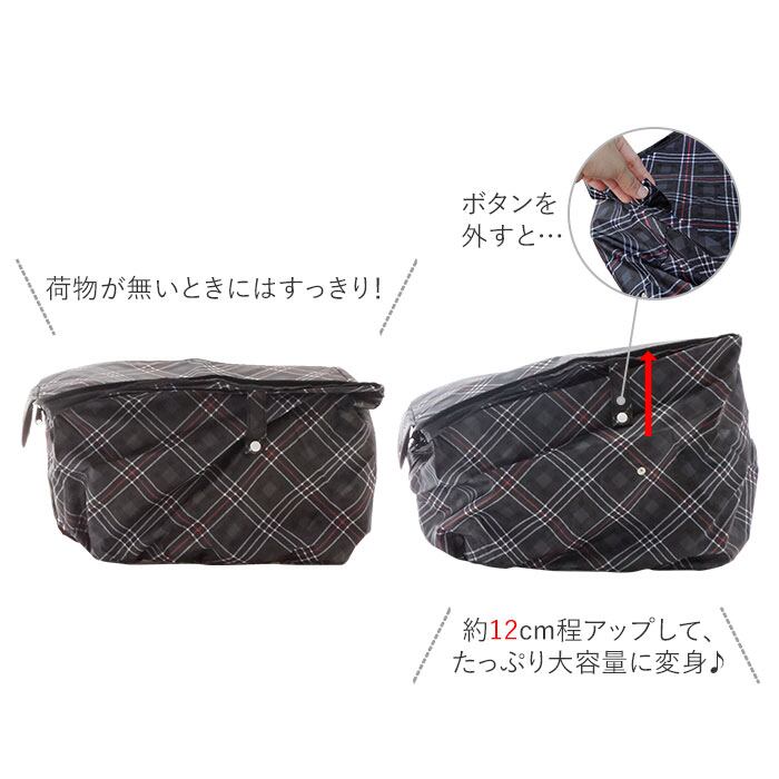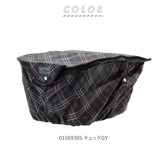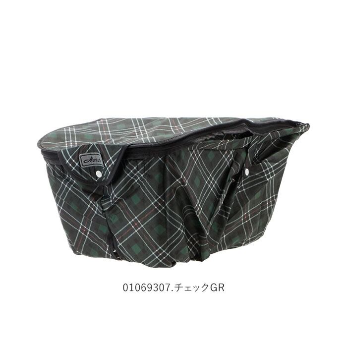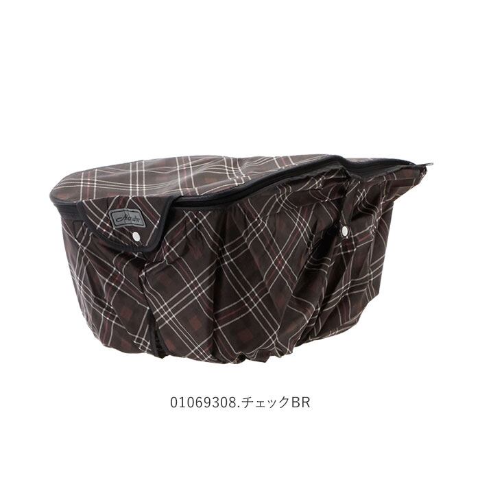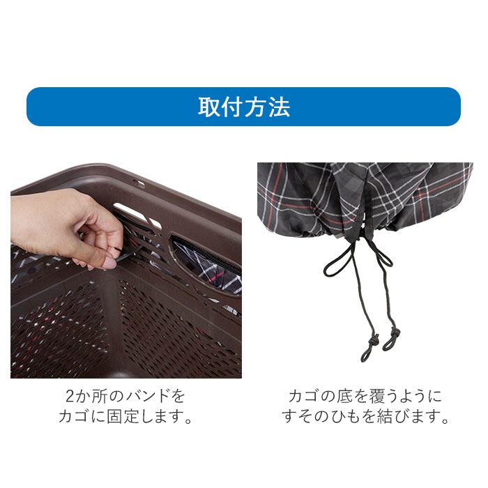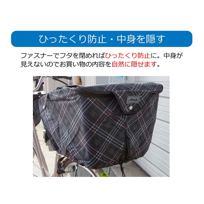 ・落ち着いたチェックの柄のカバーで、お買い物や荷物のさりげない目隠しに。ファスナーでフタをしっかり閉めることで盗難などの抑止効果にも。