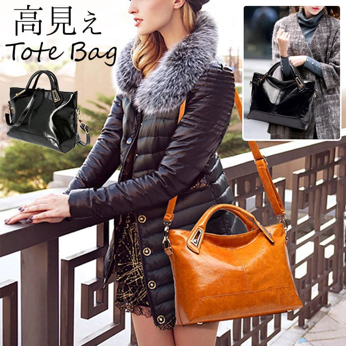 ・光沢感のある滑らかな素材感とゴールドの金具が高見えするファッション性の高いアイテム。