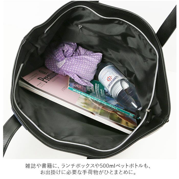 ・メイン収納スペースは、B4横型に対応したビッグサイズ。雑誌や書籍に、ランチボックスや500mlペットボトルも、お出掛けに必要な手荷物がひとまとめに。