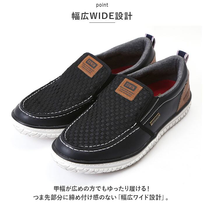 EDWIN メンズ スリッポン 7748 通販 エドウィン スニーカー 紐なし 滑りにくい スリップオン 軽量 軽い おしゃれ シンプル カジュアル 防滑 耐滑 幅広 3E ゆったり 靴 くつ シューズ メンズファッション メンズ靴