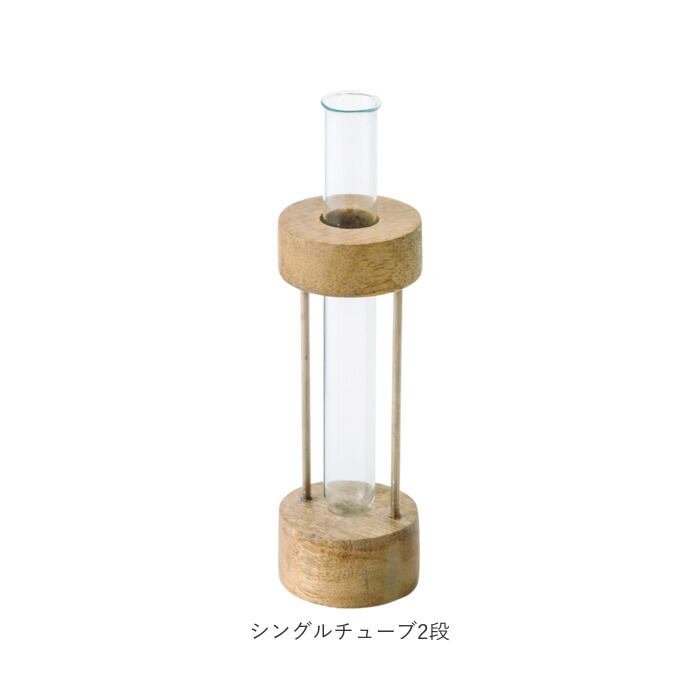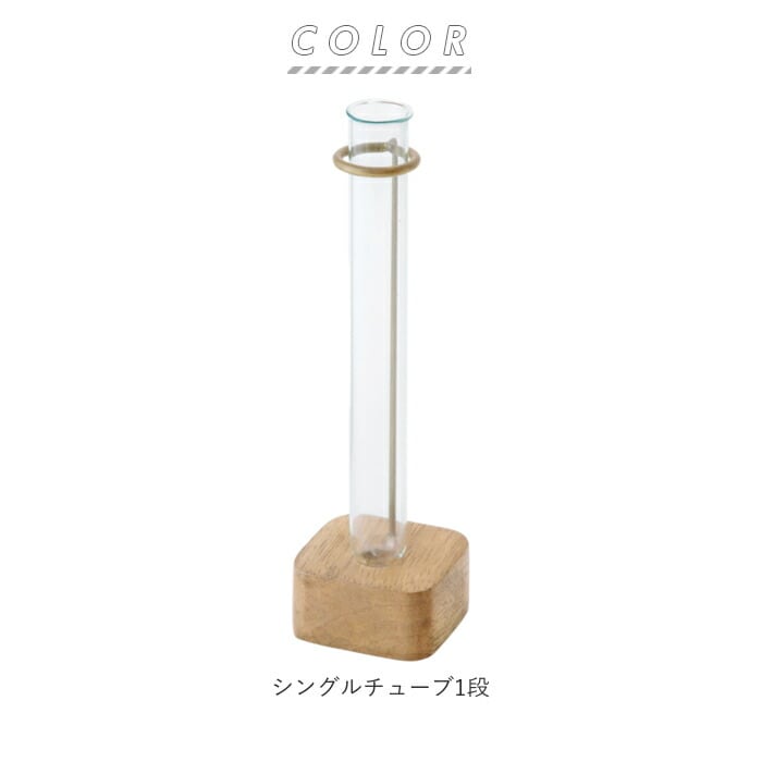 ・天然木とガラスを組み合わせた、ナチュラルで優しい雰囲気を演出してくれるフラワーベース。(※カラーによりデザインが異なります。ガラス管は取り外しが可能。)