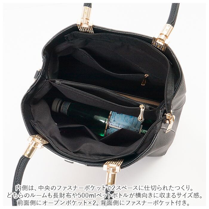 ・どちらのルームも長財布や500mlペットボトルが横向きに収まるサイズ感。