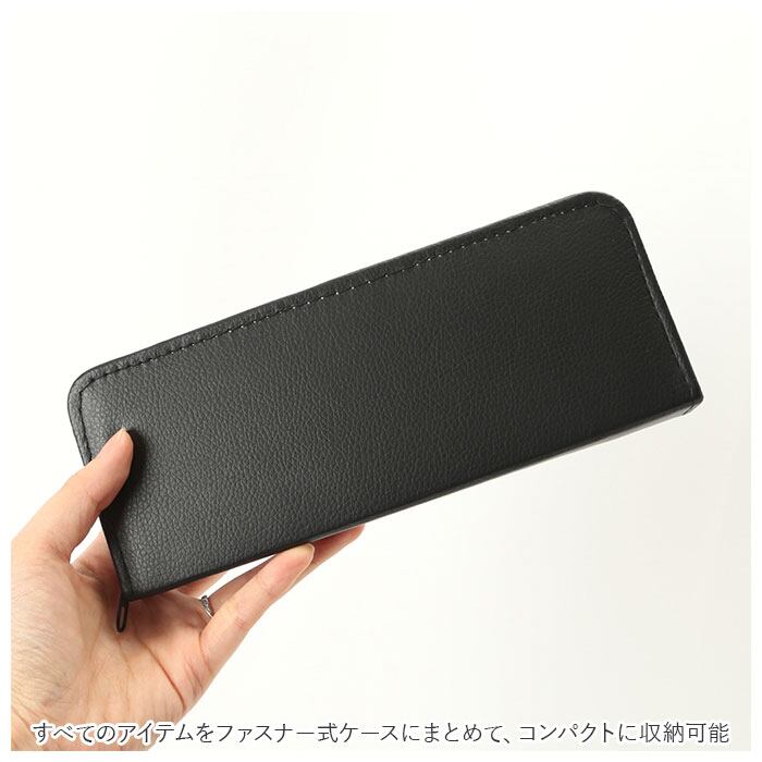 ・すべてのアイテムをファスナー式ケースにまとめて、コンパクトに収納可能。