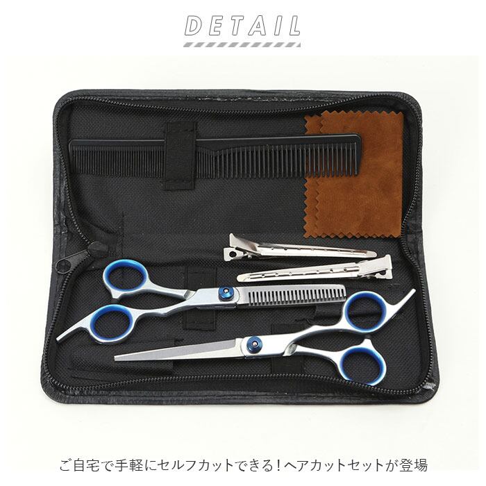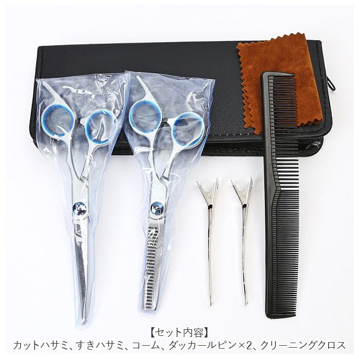 ・【セット内容】カットハサミ、すきハサミ、コーム、ダッカールピン×2、クリーニングクロス