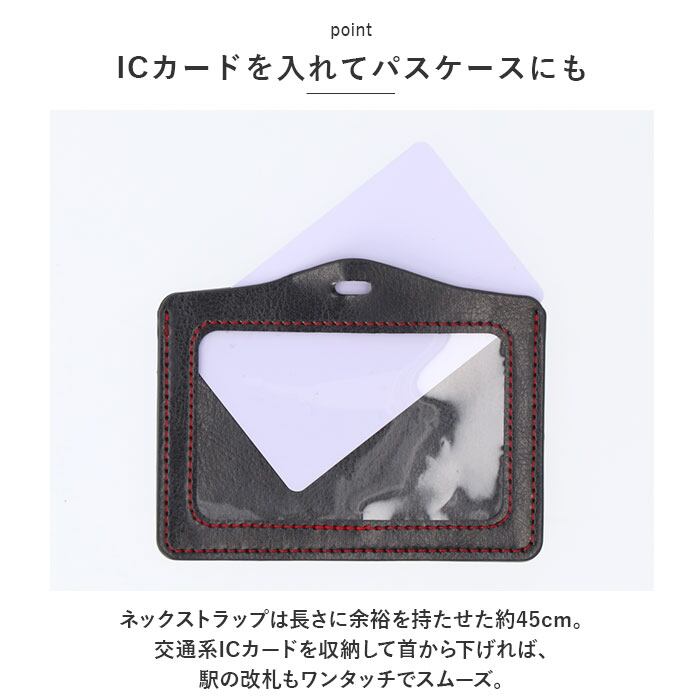 ・ネックストラップは長さに余裕を持たせた約45cm。交通系ICカードを収納して首から下げれば、駅の改札もワンタッチでスムーズ。