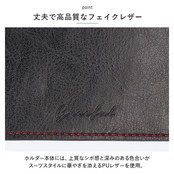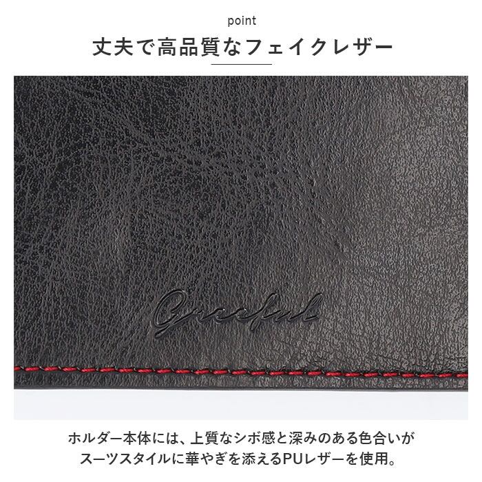 ・ホルダー本体には、上質なシボ感と深みのある色合いがスーツスタイルに華やぎを添えるPUレザーを使用。
