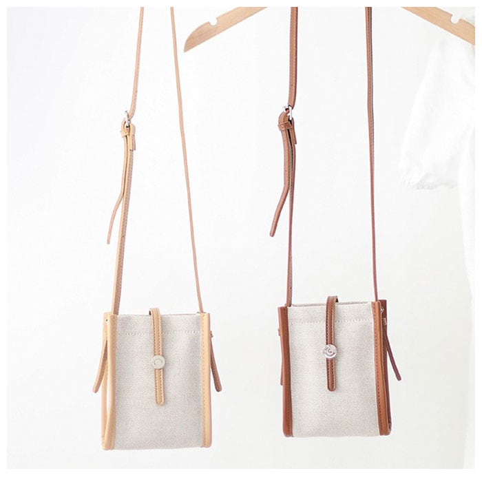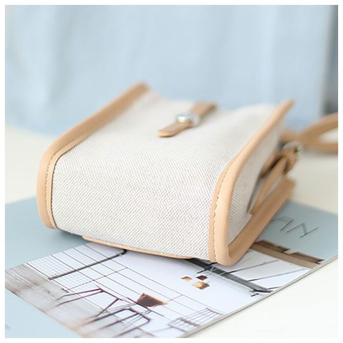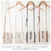 ・ナチュラルなキャンバス生地に、フェイクレザーのパイピングを合わせた、カジュアルで大人可愛さあふれるデザイン。