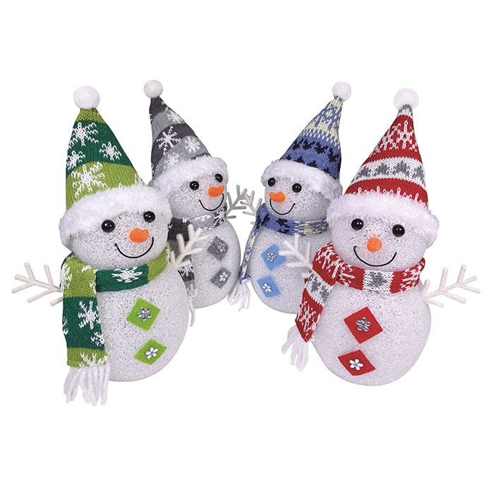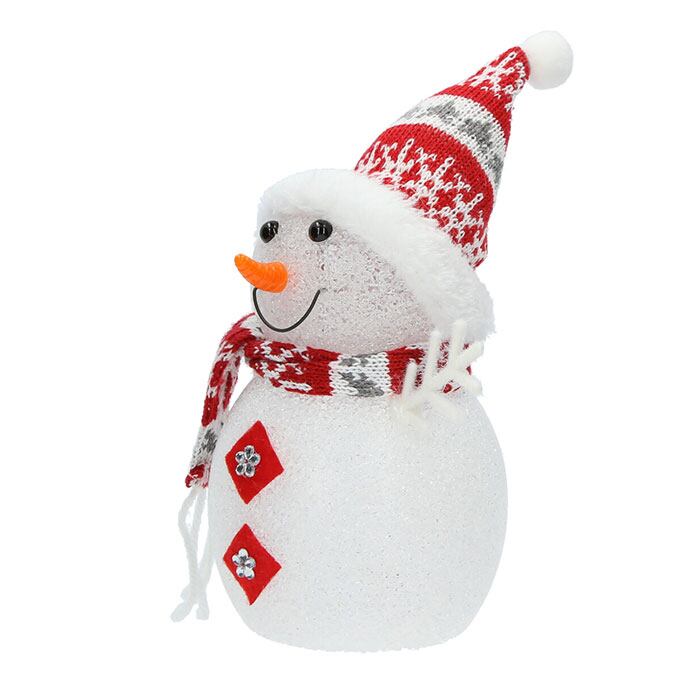 ・同柄のニット帽とマフラー姿がとってもキュートな雪だるま。ころんとしたフォルムと優しい表情で、心をあたたかく癒してくれる♪
