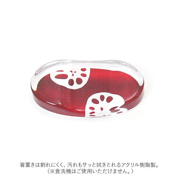 ・箸置きは割れにくく、汚れもサッと拭きとれるアクリル樹脂製。(※食洗機はご使用いただけません。)