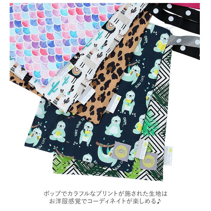 ・外側生地は、さらさらとした手触りのコットン100%。ポップでカラフルなプリントが施された生地は、お洋服感覚でコーディネイトが楽しめる♪