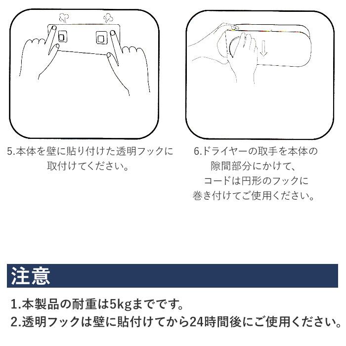 6.ドライヤーの取手を本体の隙間部分にかけて、コードは円形のフックに巻き付けてご使用ください。