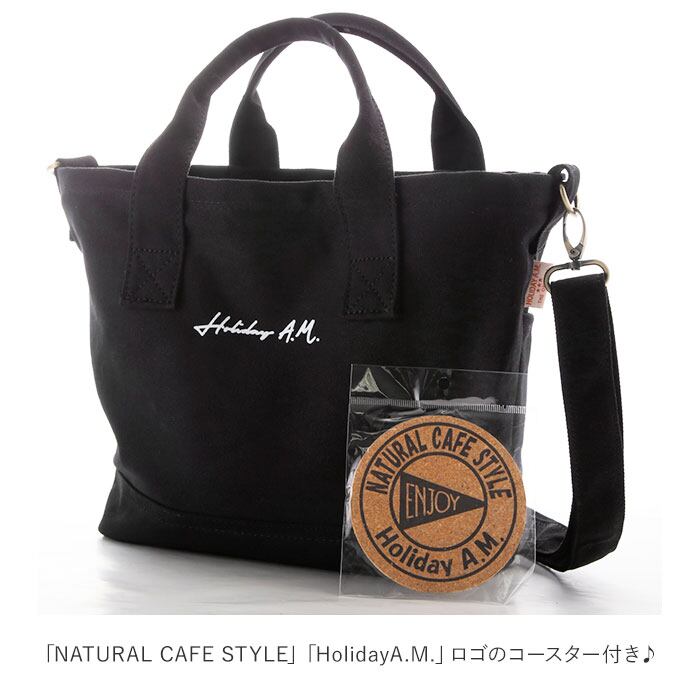 ・「NATURAL CAFE STYLE」「HolidayA.M.」のロゴがプリントされたコルクのコースター付き。