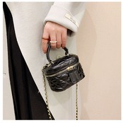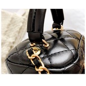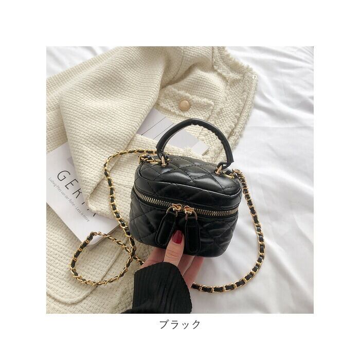 ・手持ちにしやすい持ち手ハンドルに、肩に掛けるだけでスタイルの素敵なアクセントになる、キラリと艶めくチェーンショルダー付き。